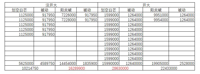 (1)开大时,【划空日芒】打10下,被动也打10下