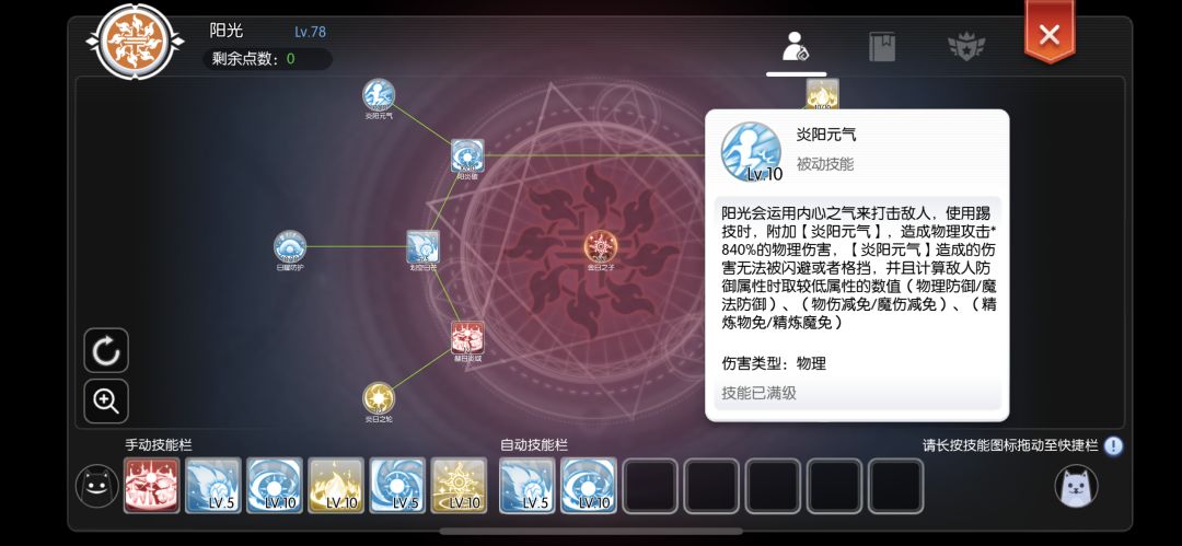 (2)阳光仍然以输出为主,此技能只是附带的辅助技能