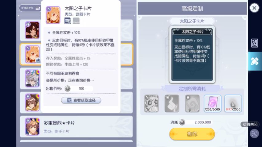 此处重点介绍2个部位的卡片推荐和阳光职业卡片(太阳之子)