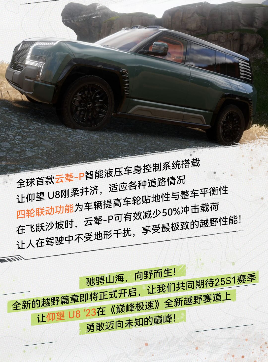 纵横沙海,硬核启程!【越野组】全新传奇车辆 仰望 U8 '23即将上线巅峰车展!