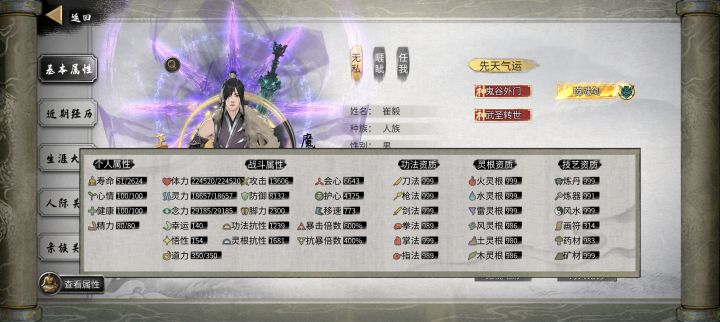 洪荒难度登仙初期属性一览