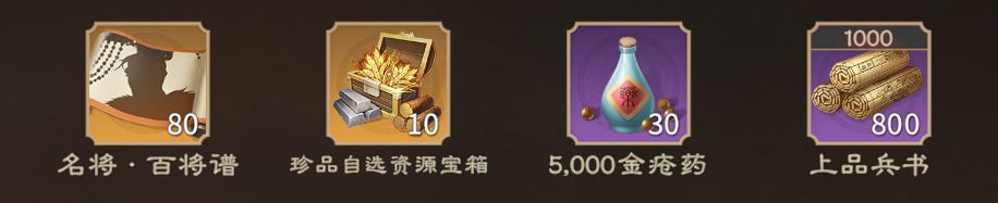 既有大家紧缺的资源福利,又有升级武将等级所需的兵书,以及升级技能所需的百将谱,还有治疗伤兵的金疮药,可谓是面面俱到!