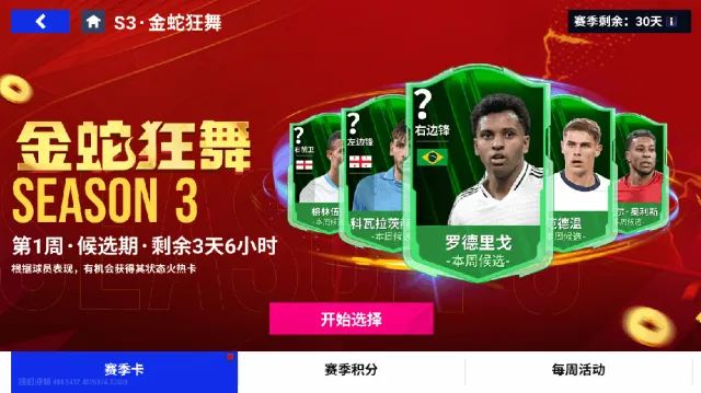 玩法与S1、S2赛季类似,各位经理可以大胆发挥对于足球的专业见解,选择最具潜力的蛇年生肖球员进行竞猜,如果他们在现实比赛中表现突出,成功入选周最佳阵容,那么就能获得对应的卡包,开出当周对应的【赛季卡·火热】球星!