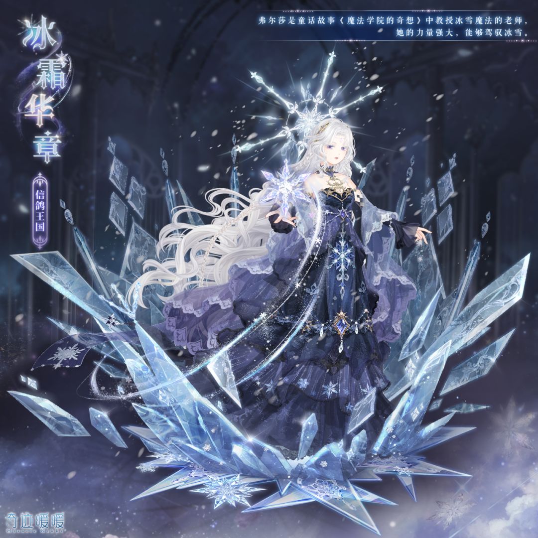 【冰霜华章】含正常姿势与特殊姿势,全新妆容“心澜微漾”,特殊姿势手套“雪夜华章”、“雪夜魔法”,精美可移动摆件“凛冽晶辉”、“六出冰花”、“飞雪朔风”。