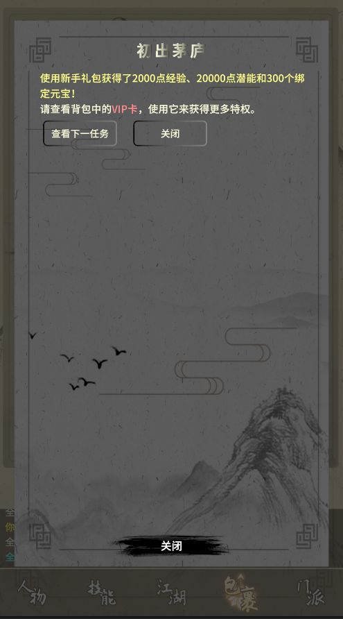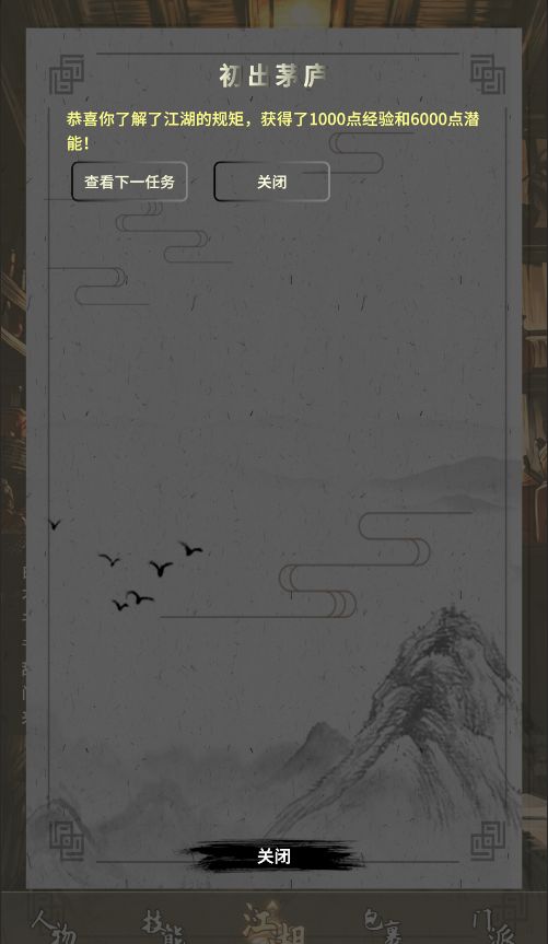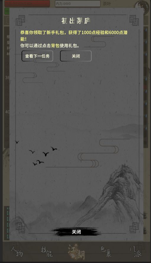 很好 简简单单完成后了第一个新手任务拿到了潜能和经验的奖励!