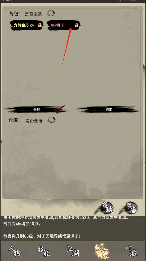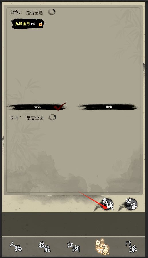 我们选择去商城购买要我们购买的游戏道具 商城在包裹页面!