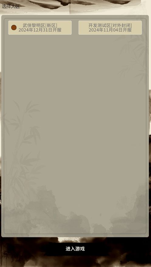 选择大区!有写大区名字和开服日期!选择自己喜欢的!点击进入游戏!