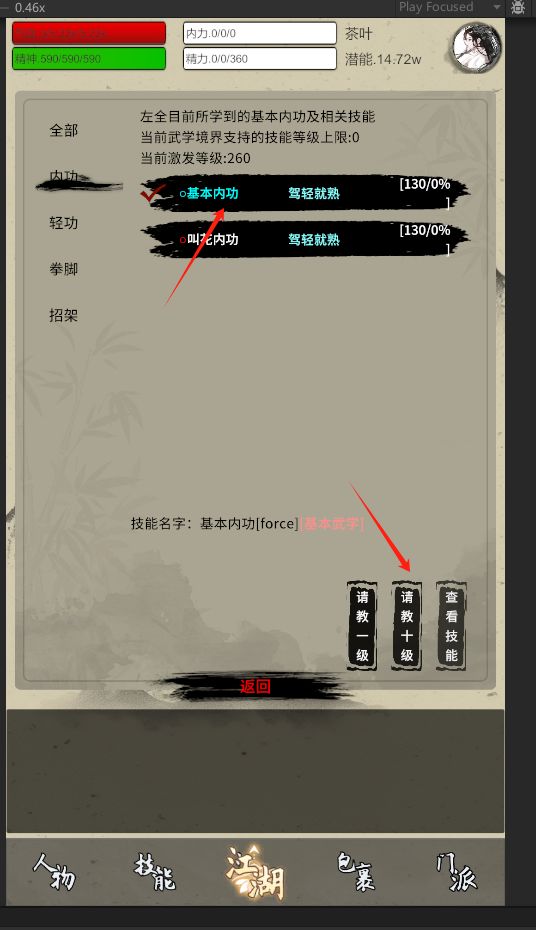 潜能!关乎到我们提升自己的武学技能所需要花费的东西!