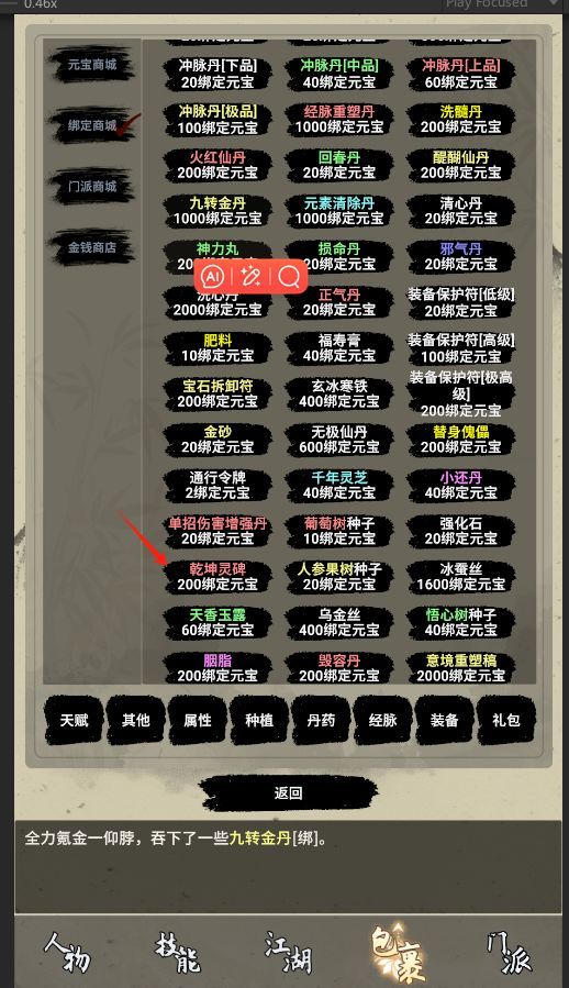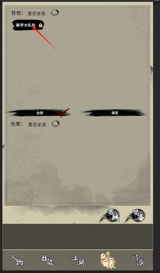 我们选择去商城购买要我们购买的游戏道具 商城在包裹页面!