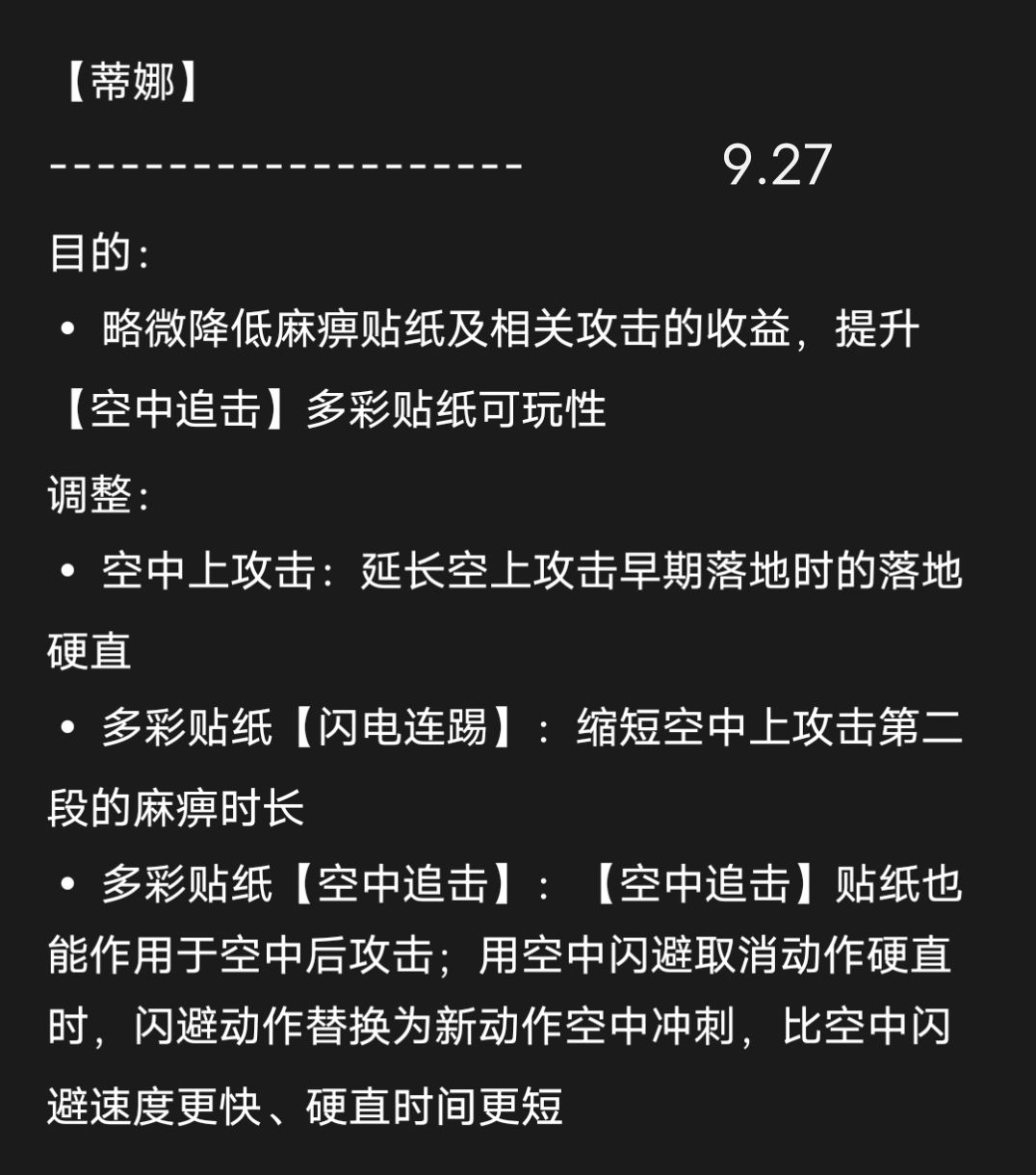 空N后使用盾键触发空中冲刺后的后摇打桩都不能真连,空N对敌人造成的硬直在10.31也被缩短了。真怀念9.27的蒂娜。如今想想9.27后搞空追彩贴的我就像一茬韭菜,半个月搞出贴纸玩了半个月就削了。![[表情_捂脸哭]](https://img-tc.tapimg.com/market/images/83aa452eea88b5c64df710bca367b7e9.png)