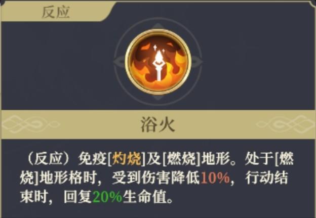 [灼烧]:减益,每次行动结束时,损失10%生命值。不可叠加,重复添加时立刻受到1次伤害。