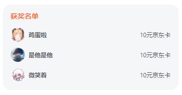 感谢大家对本次活动的大力支持,京东卡中奖名单如下:
