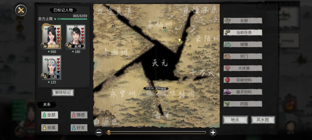 结果在我最后抱着绝望到心如死灰的心情点开了任务栏,发现它有个风符的主任务,在华封洲,又想到没找到的冥种也是在华封洲的,就点进背包找,刚开始没找到,但这个任务又没标点,又给我急坏了,又仔细找了找,终于是看到了,一点开使用,最后一个幽窟标点终于是找到了。唉,一想到前边的操作,我自己都给自己气笑了😭