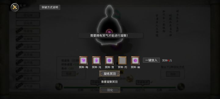 服气了,去百度一搜,只说了冥气是羽化刷新什么的,没提到什么bug和找不到冥种,又进游戏,来来回回看了个遍,还是找不到问题在哪,还是以为是前面点错了导致的,到那儿附近全堪舆了一遍,又把几个幽窟转了一遍,还是没有发现,还以为要止步悟道了,心凉了半截,都想着前边没操作好出bug坏档了,想退出重开了。