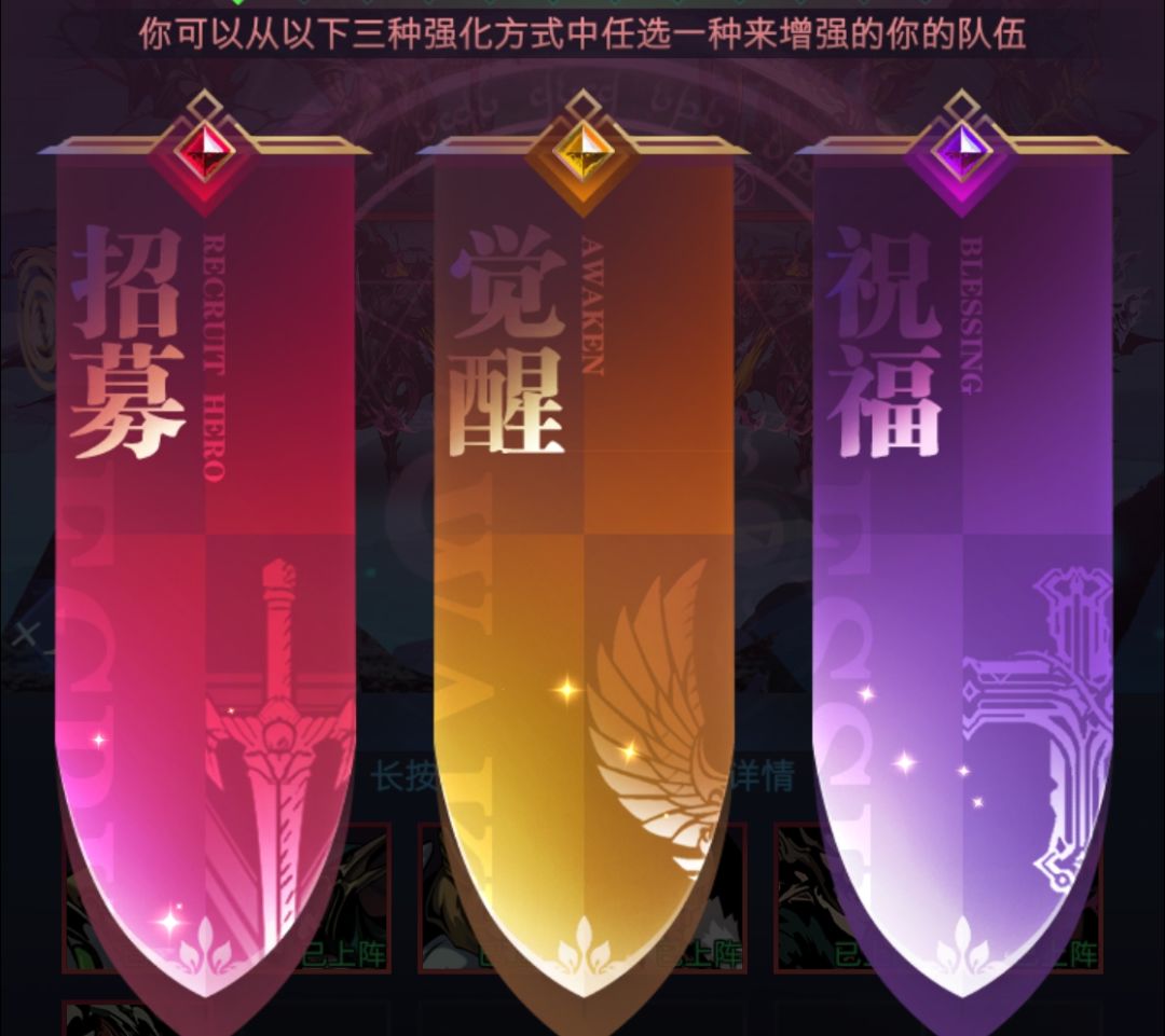 祝福一般放在最后。前面说了,前几回合主要靠招募补齐阵容,觉醒提升队伍质量。当阵容也较为完备,该觉醒的也都觉醒了时,就要靠祝福来提升队伍上限了。