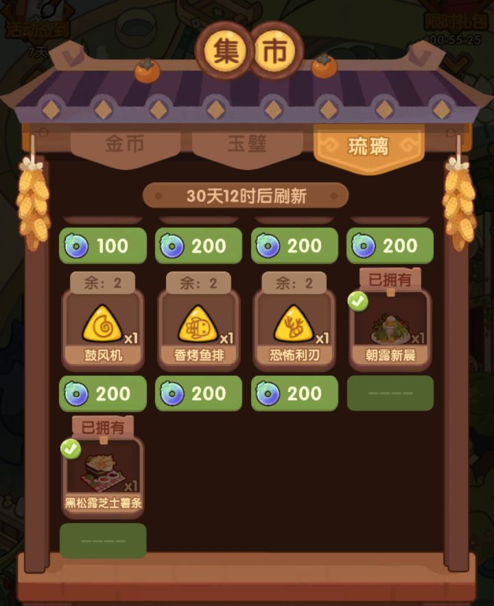 本月琉璃商店菜谱为朝露新晨和黑松露炸薯条,不过我已经有了