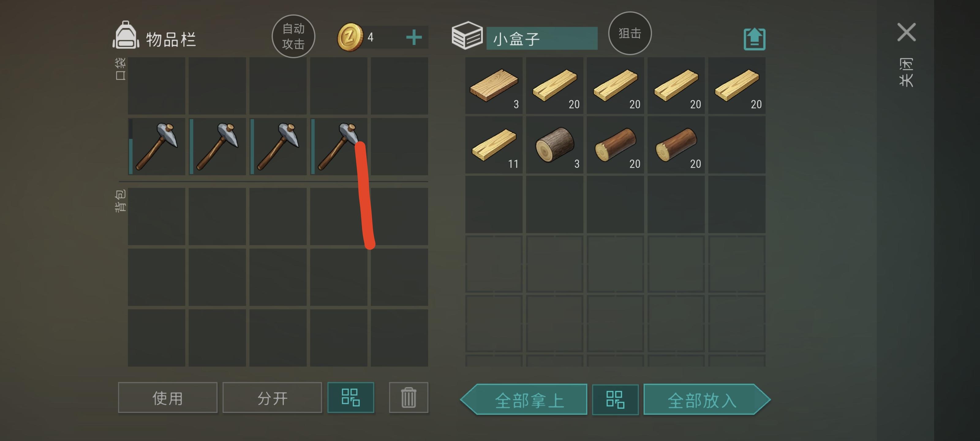 根据需要,最多带4铁斧。7石斧或者更多。从我这里开口砍进去,可以直接卡箱子,外面篝火是20胡萝卜汤,木工台是19木头1木板,熔炉16铁矿1铁棒,石匠工作台20石头,其他工作台都是空的。所有缺口都是砍开的墙。不一定要像我这样砍完,可以侧边开了木头房,不开铁房间也是可以的