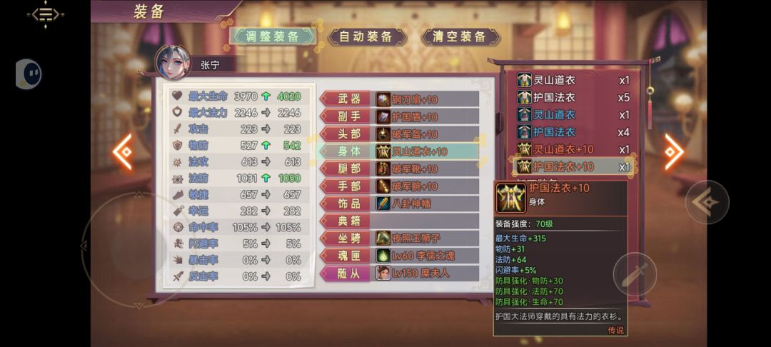最大生命+315,物防+31,法防+64,闪避+5%
