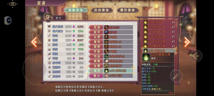2、LV70曹昂之魂:最大生命+150,最大法力+150,攻击+30,物防+30,法攻+30,法防+30,幸运+15,习得技能:魏武之嗣