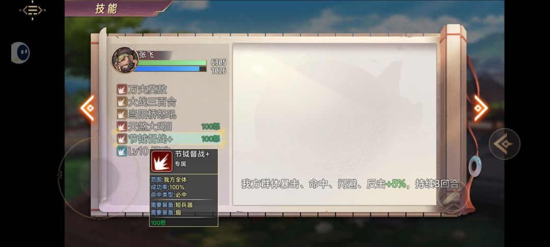 节钺督战:我方群体暴击,命中,闪避,反击+5%,持续3回合