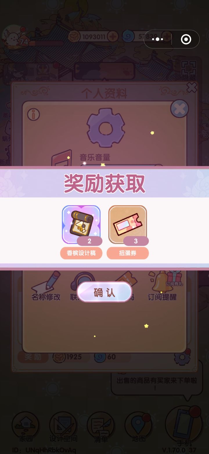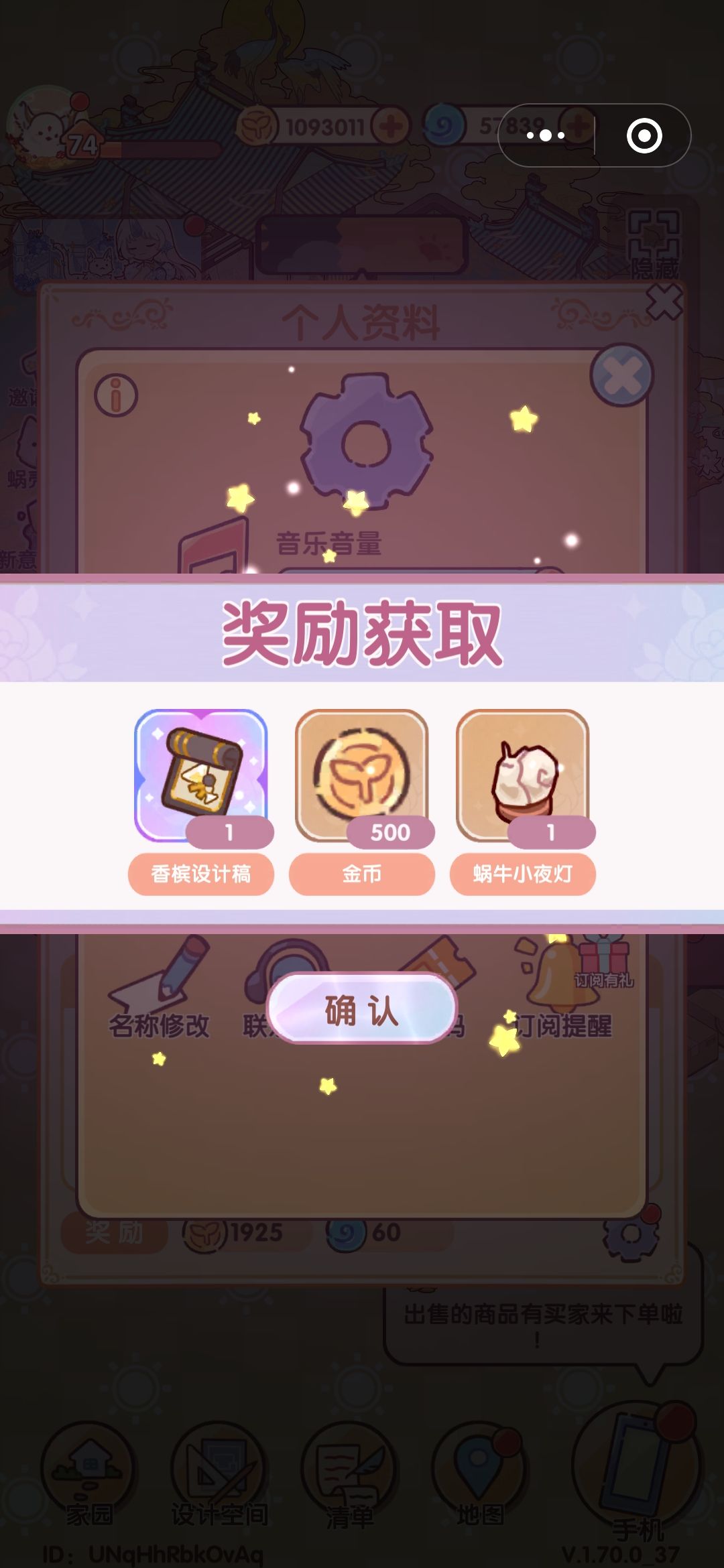 兑换奖励:香槟设计稿×1、金币×500、蜗牛小夜灯×1
