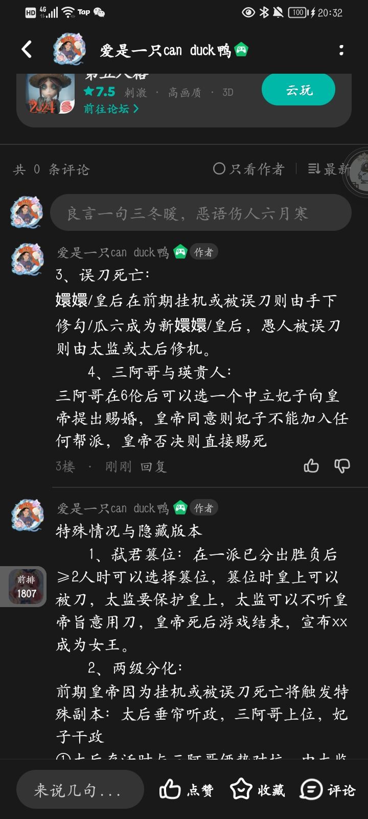 规则已经过上百场试玩整改,最大程度保证公平。灵感来源于甄嬛传,谢谢大家喜欢。