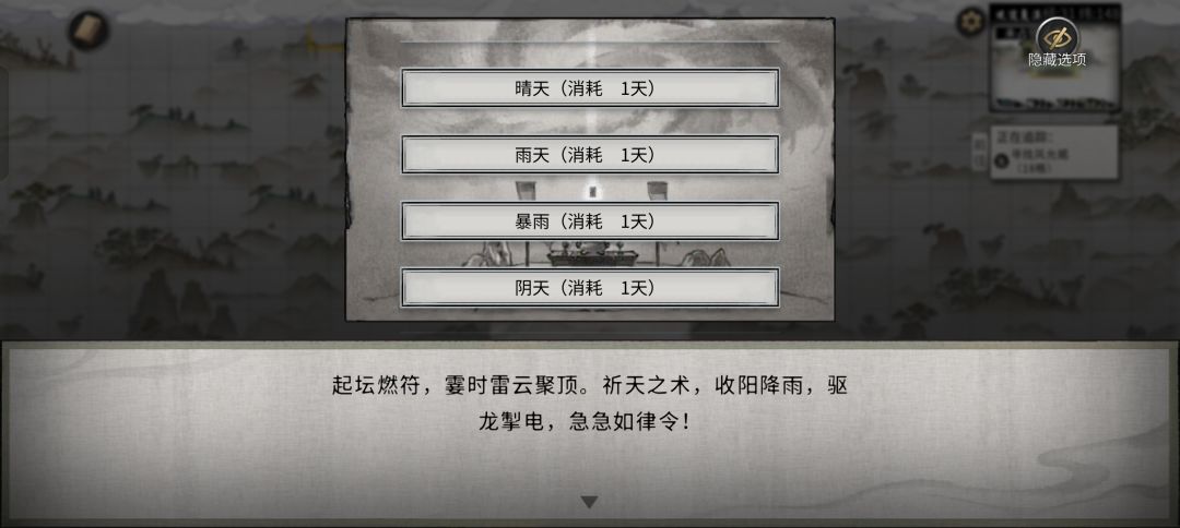 上面第9张图是“祈天符”使用失败意思是用了不能改变天气。