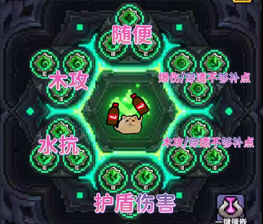 对于魂点不够用的同学,在满足穿透和暴击的前提下,各项属性平均分配点取,或者可根据自己面板来自己调整加点~