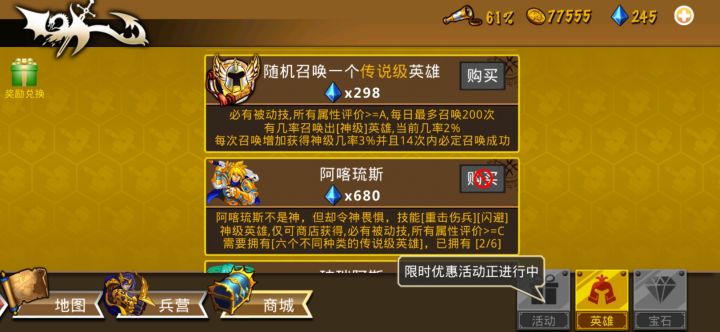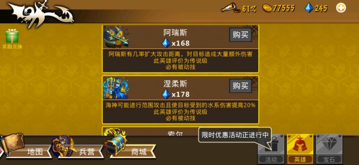 前期赚钻比较困难,后期大家可以通过每日任务得到一些钻石,等队伍基本成形后千万不要忘记浏览商店购买合适的英雄。