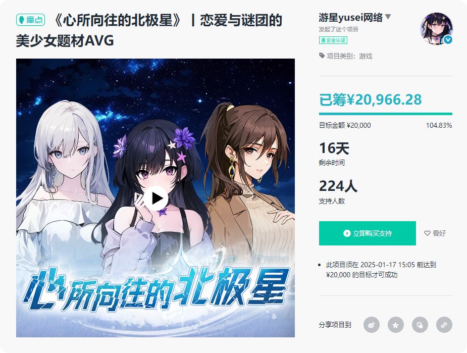 在众多热情的玩家的支持下,我们终于达到了众筹成功金额啦!感谢信任与支持我们的玩家!