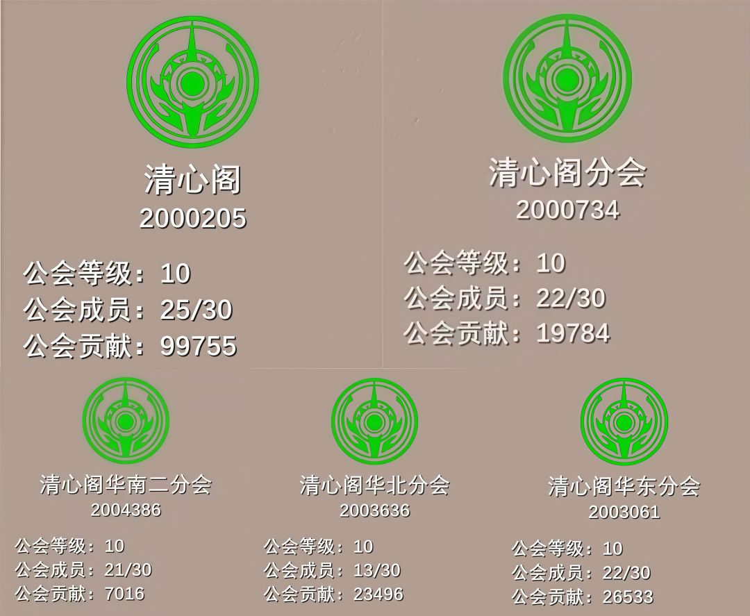 清心阁作为老牌公会之一,在各服务器均有满级公会,满级公会能为游戏玩家提供日常所需的公会商店兑换,快速发育。人海茫茫,相遇即是缘分,加入清心阁公会,一起玩游戏,不再一个人战斗,游戏就是要人多才好玩。清心阁公会入会不需要改游戏名,公会没有太多规矩,能一起玩游戏就是缘分。