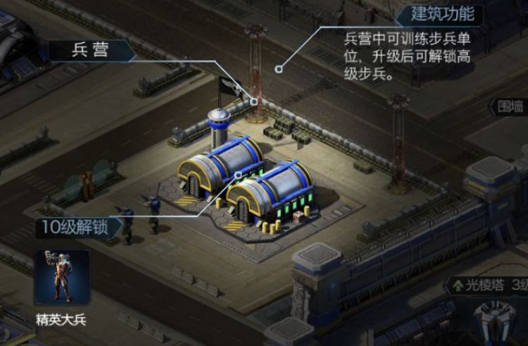 如果你是个注重进攻的指挥官,那你就要优先升级兵营、战车工厂、坦克工厂、空指部这些建筑了。