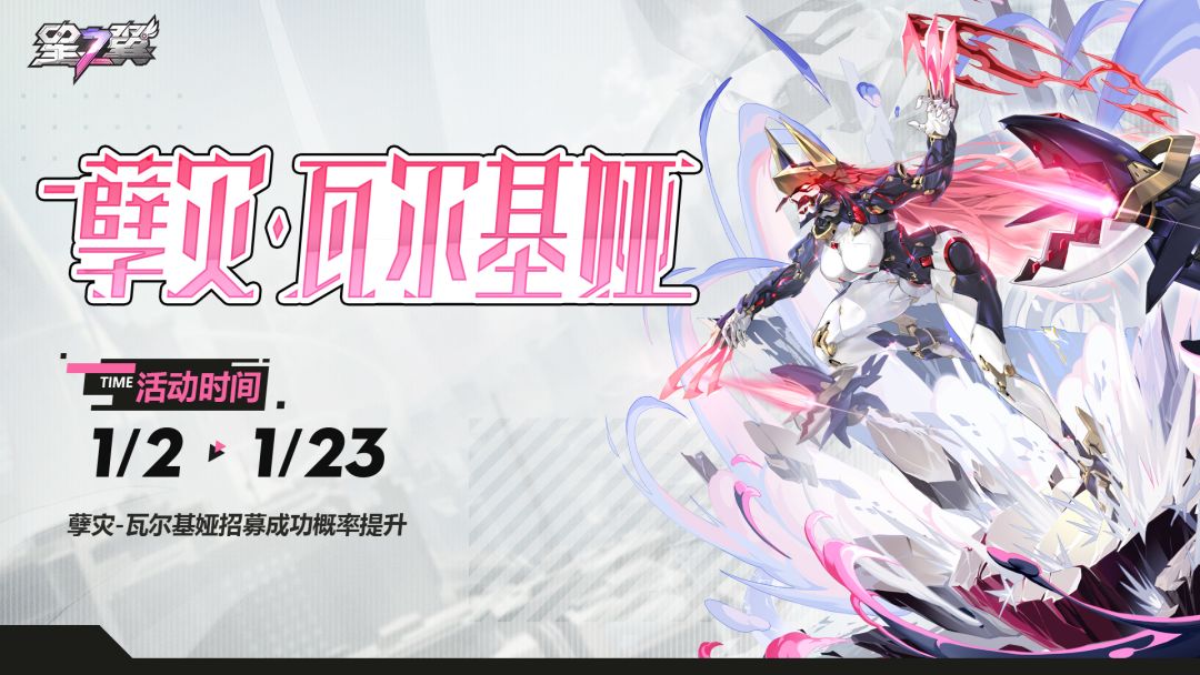 活动期间,角色【孽灾-瓦尔基娅】招募概率提升!团长可参与「孽灾-新角色50%卡池」和「孽灾-新角色100%卡池」两种类型的招募活动。