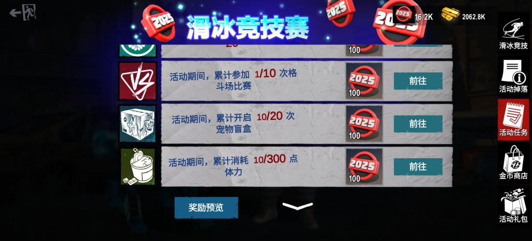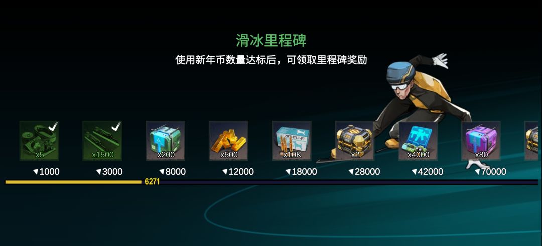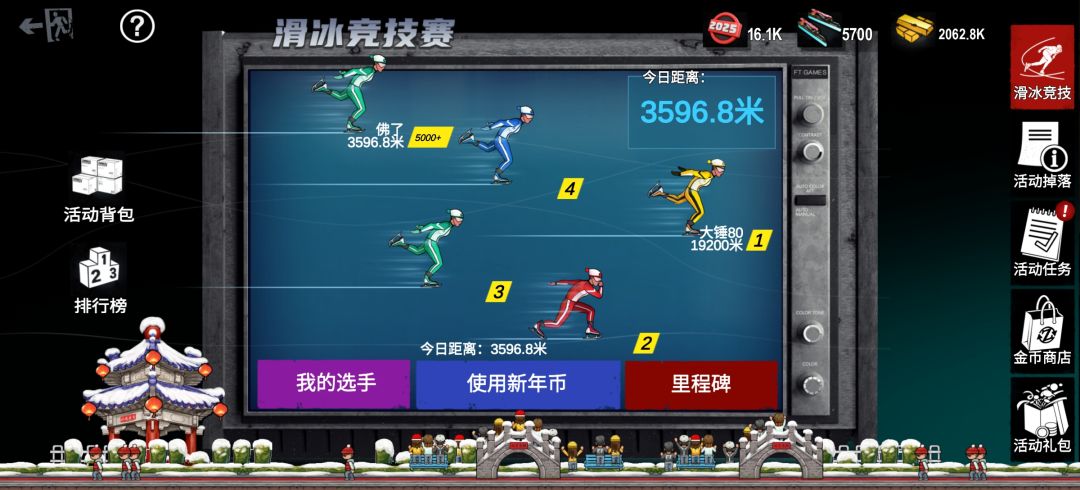 活动期间,开启滑冰竞技活动,消耗1个新年币可使运动员基础行进1米。每消耗300个新年币获得一个礼盒,第二天不重置余额会继续累计。