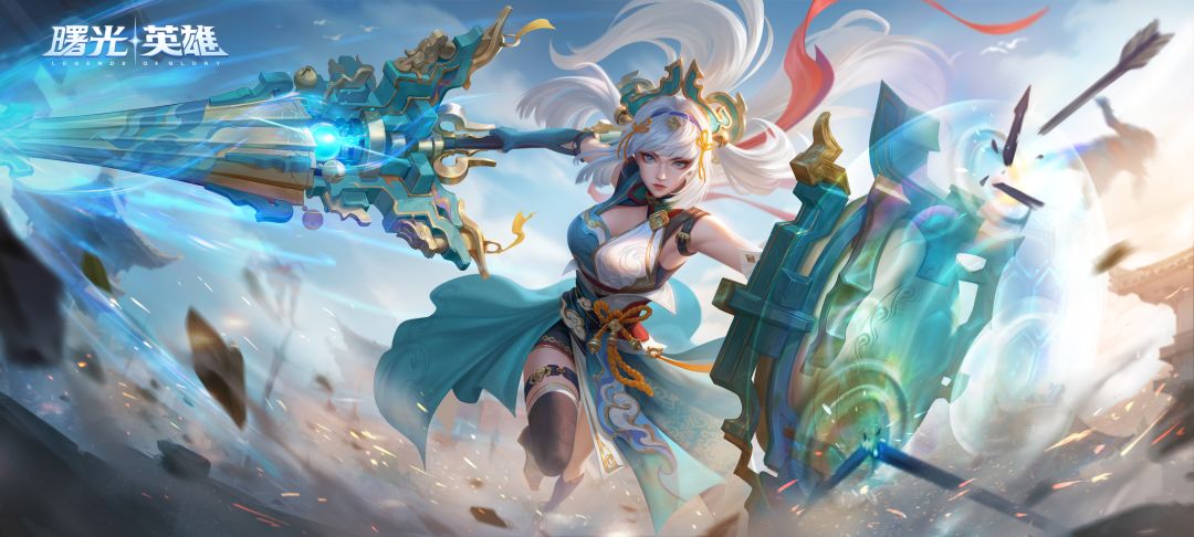 在皇都羽林卫的主题概念下,我们设计了一位性格干练坚毅的女性角色。原英雄的武器长枪和盾,在这里设计为机关伞和黄铜镜,以在技能效果上展现更丰富的特色。配色上主要使用了中国传统文化中常见的青色、黄色,令角色更有古韵,整体呈现出一个认真守则、富有正义感的少女侍卫形象。