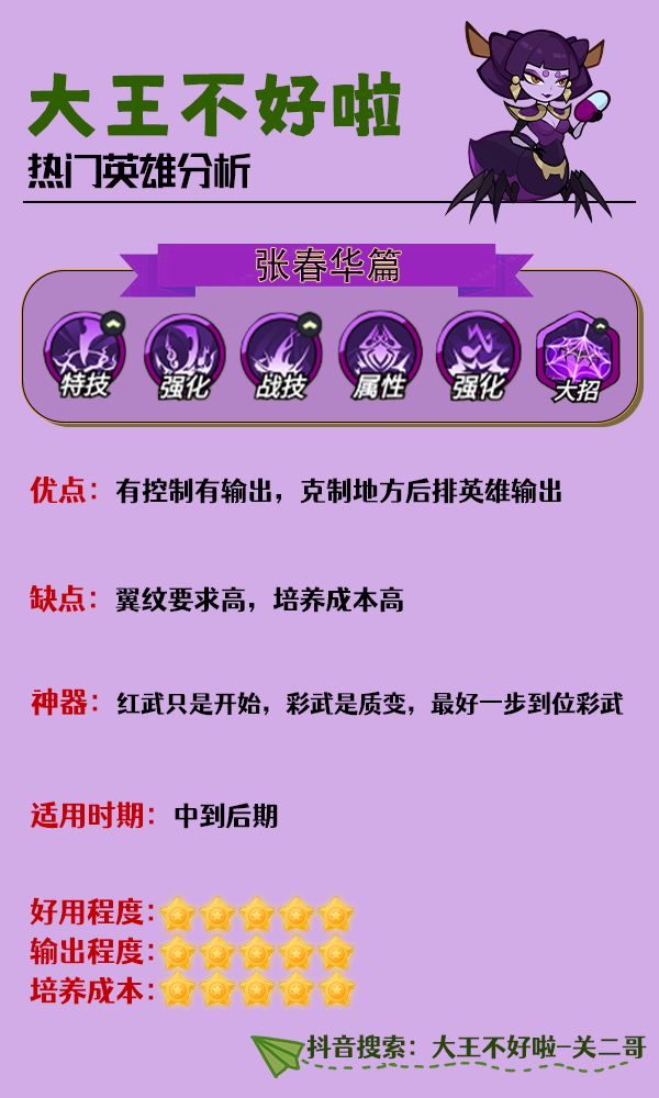 接下来就直接给大家上干货了,热门英雄解析——张春华