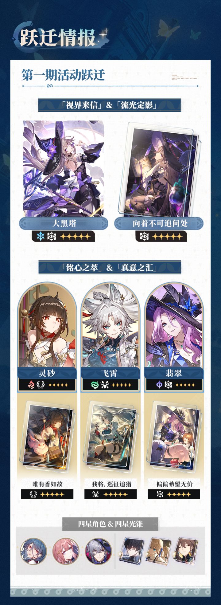 总结:最推荐知更鸟,下个版本唯一一个复刻的辅助,含金量最高,群拉增伤。两个新角色,一个老早就见过面的黑塔,没啥说的搭配大家都懂(智识阵容应该没啥太难配对的吧?)至于阿格莱雅没有周日哥,活的可能会有点艰难(有可能就又是一个高配版老景)几天前报道的缇宝、万敌,小道消息:高配的刃,有分身的辅助。可以期待一下。鄙人该说的都说了,剩下的就靠诸位自己了氪金氪金,当肝佬的当肝佬。