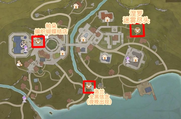编织蝴蝶结店:针织双蝶(头饰)勾勾蝴蝶(头饰),愿望票耳坠(耳饰),愿望瓶项链(颈饰),微光坠地(愿望节纪念品)