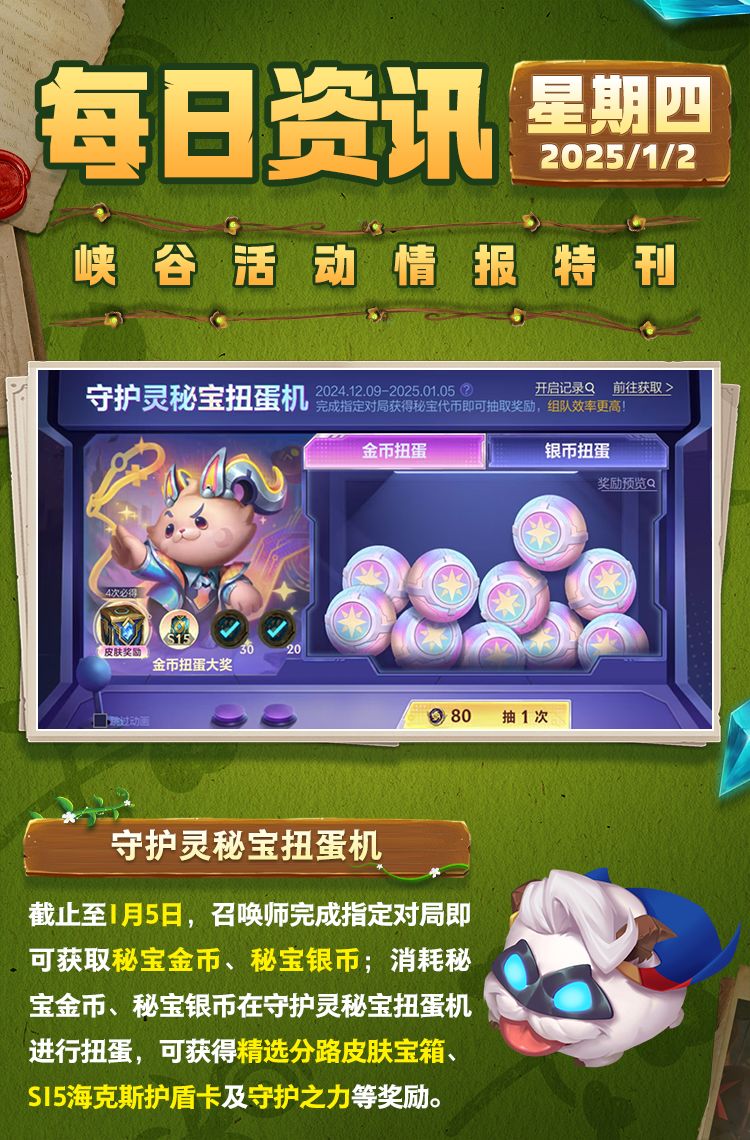 冰雪心愿礼结束倒计时最后1天!截止至1月2日(今日),召唤师可加入或创建一个队伍来开启活动,通过参与游戏对局和队伍成员们一起收集心愿能量填满心愿球,就有机会获得出生印记-圣诞快乐、头像-是!哥们!和无畏队旗-狂欢队旗等冬季限定奖励~
