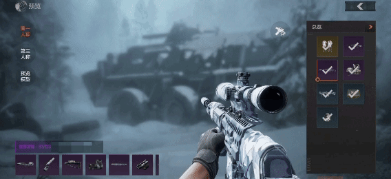 涂装以冷冽的白色为主色调,辅以深灰色和冰蓝色作为点缀,整体风格冷酷而神秘,仿佛是雪原中的幽灵,悄无声息地穿梭于战场之中,将一切危险暗藏在茫茫白雪中——SVDS、AK74N和DP-12迎来全新外观!