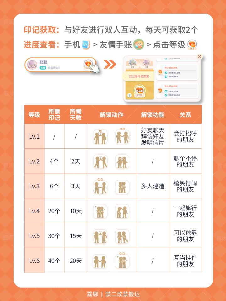 印记获取:与好友进行双人互动,每天可获取2个