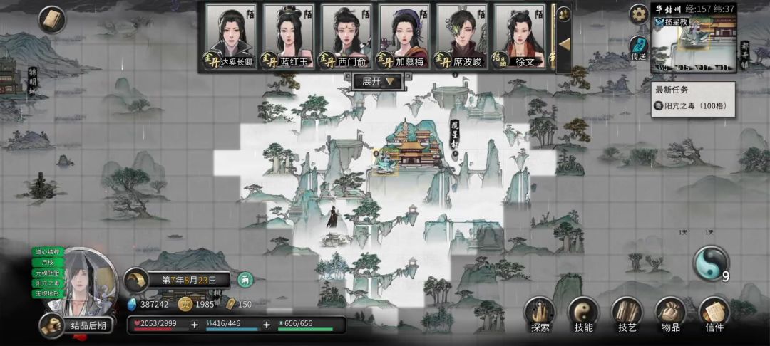 中间插一句: 如果你嫌自己的技艺资质太低的话,可以去左上角事件里面,看看里面有没有刷新药灵,石灵一类的小boss。