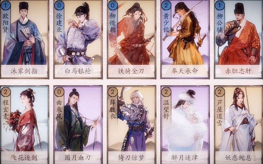 ※回到主题 为什么楼主本人会选永乐呢 众所周知 永乐的欧阳与黄 是本游的绝对控制 对于现今环境的自驱大军有着非一般的抵抗力 同样对薛与温的效果起到保护 而柳氏父子跟薛温的相得益彰 开局3点流血 避免了其他阵营开局空手的概率 而护主又能提升薛与温的数值并且防御 再然后徐的回手与破盾效果 压缩牌库是其次 能使我们带上芦屋去配合薛进行斩杀 不会像其他阵营大概率会被卡盾 而现在下来我们已经有8张卡了 剩下两个空位 楼主决定选择江湖的曲与程 曲能与柳做加法 并且增强配合薛与温 而程对抗负面 加强我们的防御 也能配合曲恢复自身状态。