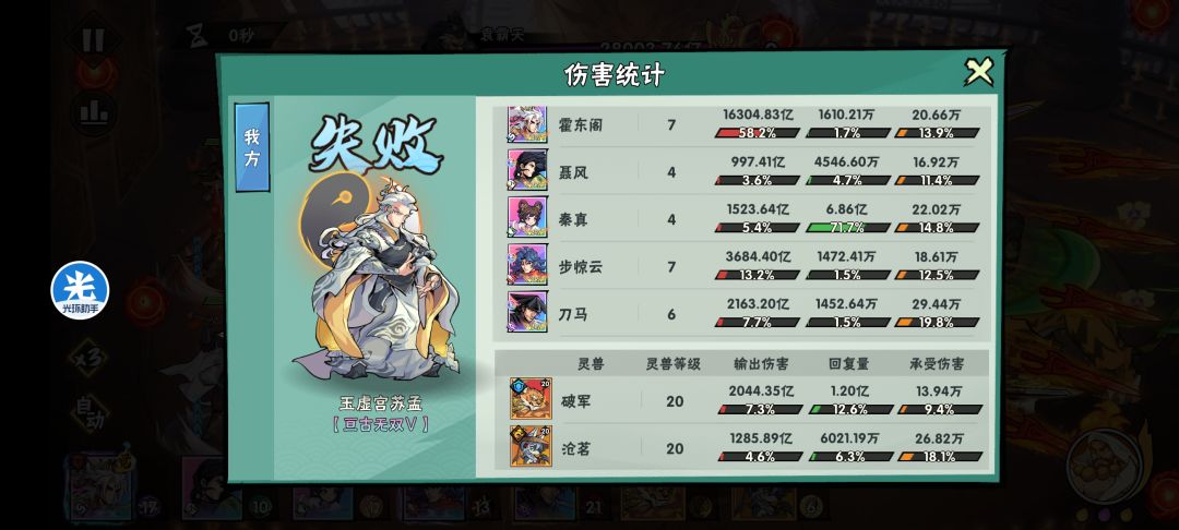 秘籍核心双疾风双会心圆缺,都4阶3星融汇,玉佩破极无双,霍东阁28000亿,掌命21000亿,差不多4:3,霍东阁明显优于掌命