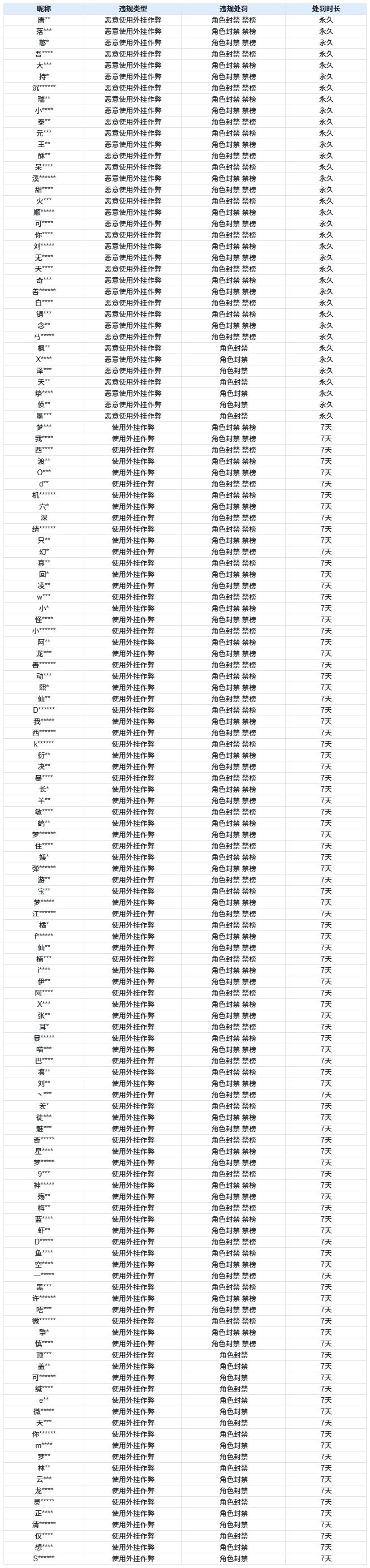 1月10日外挂打击及处罚名单公示:>>传送门<<