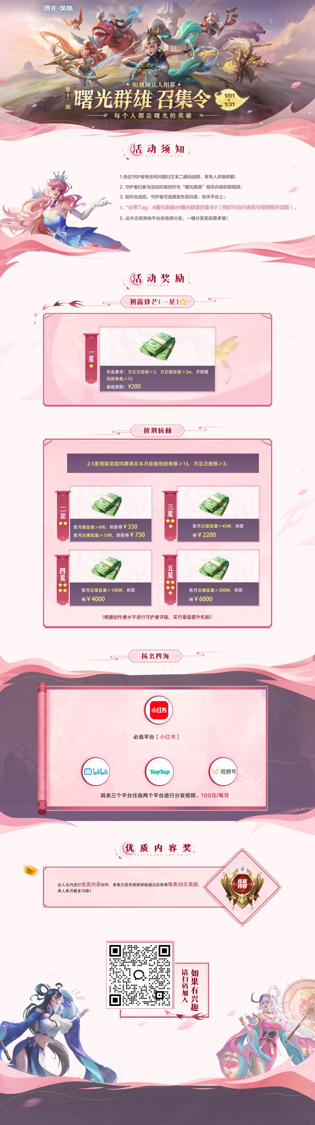 2、【优质内容奖励】当月进行优质内容创作,单条已发布视频审核通过后获得每条50元奖励,单人单月最多10条!
