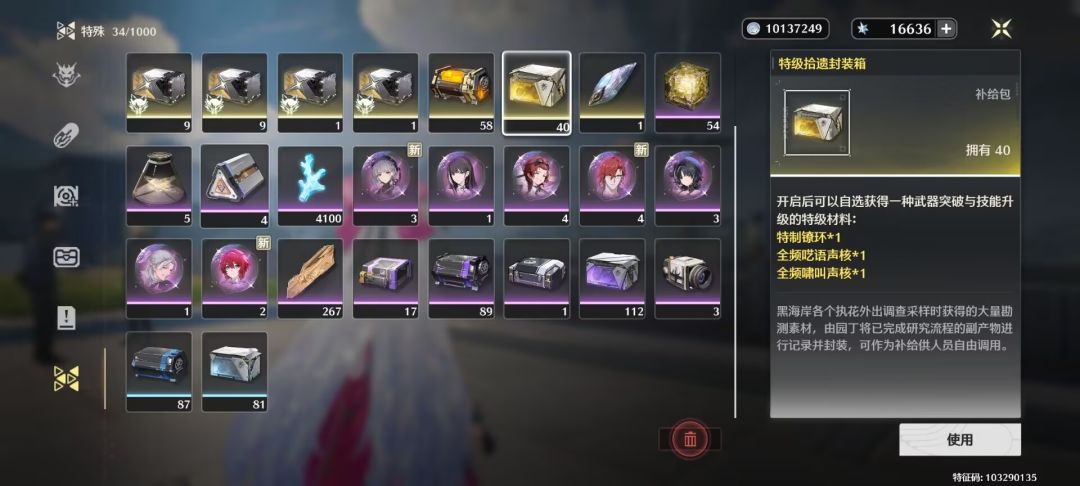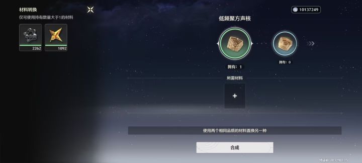 昨天研究了半天材料,算着背包的和合成后的量,这个比较麻烦,注意周本卡的突破材料,呓语和呼啸每种都要留一个满级角色和武器 面具材料不要换这个稀缺以后还要升级武器用,后面有旧地图角色,两个换一个亏死不换没有用,休闲玩家合成应该刚好够一个角色的,周本等几星期材料也是完全不用急不要都合了,周本有多少就先合多少