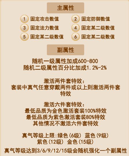 装备任意同类的2个部件可激活两件套功能,凑齐6完整的6个更可以激活强大的6件套功能哦!