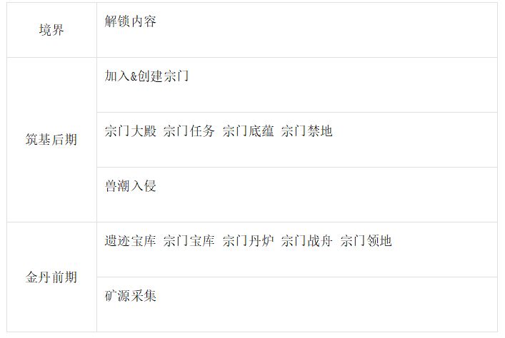 附宗门相关的玩法活动解锁境界一览