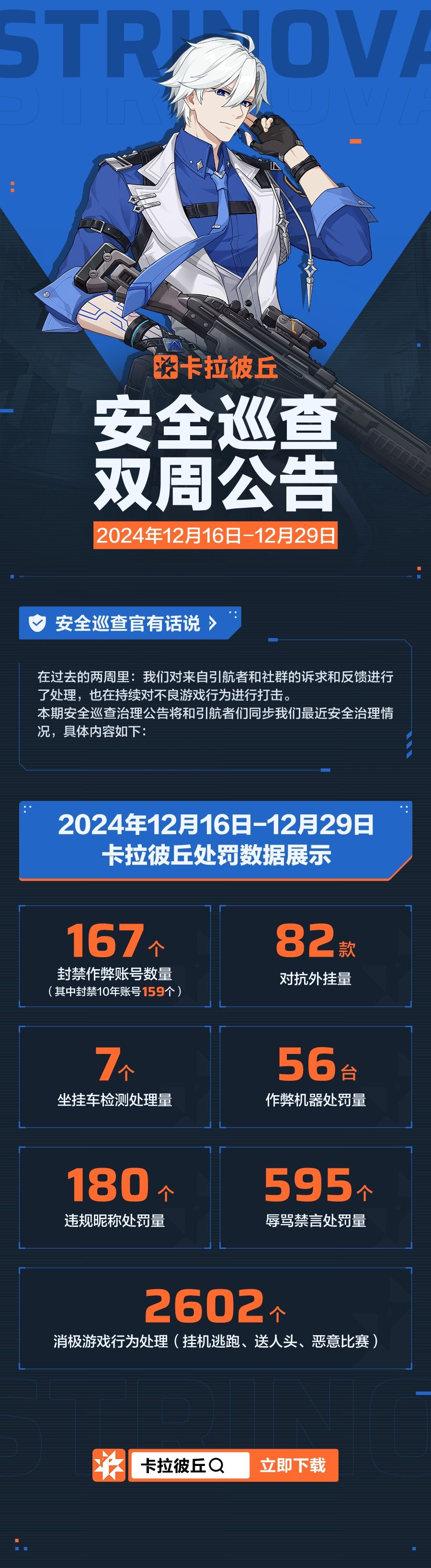 欢迎引航者收看1月3日的安全巡查公告,在过去的两周里,我们对来自玩家和社群的诉求和反馈进行了处理,也在持续对不良游戏行为进行打击。本期安全巡查公告将和引航者们同步我们最近的安全巡查情况,具体内容如下: